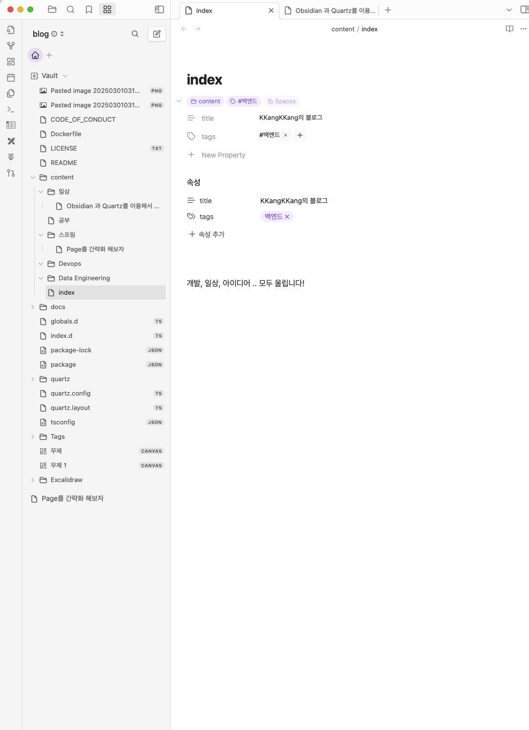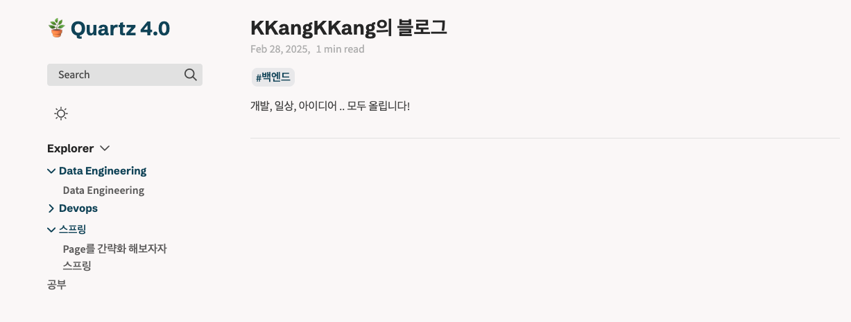 그렇다고 화면을 구성하지 못하는 범부인 백엔드 개발자인 나는 이번 기회에 Obsidian과 Quartz를 이용해서 블로그를 배포해보기로 했다.