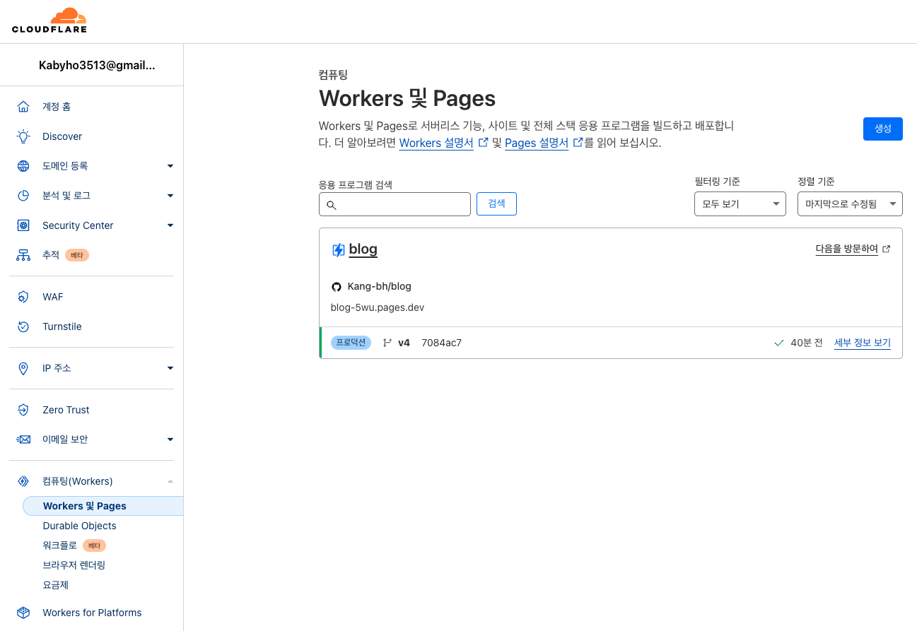 이제 github에 올려둔 repository를 연동하여 무료로 배포를 하기 위해 Cloudflare를 사용할 것이다.(배포 방법은 다양하게 있으니 원하는 방식으로 해도 괜찮을 것 같다.)